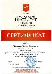 2018 г. Международный институт аутизма КГПУ им. В. П. Астафьева Тема: «Разработка и внедрение эффективной наукоемкой высокотехнологичной методики коррекции когнитивных нарушений у детей-инвалидов», 36 ч
