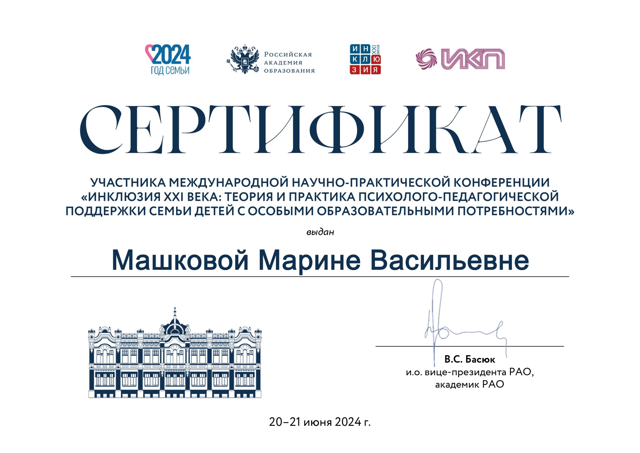 2021г., март Красноярский государственный педагогический университет им. В. П. Астафьева XXIII Международной научно-практической конференции имени профессора В.А. Ковалевского «Психология и педагогика детства: развитие,воспитание, образование детей в условиях пандемии и ограниченного взаимодействия»